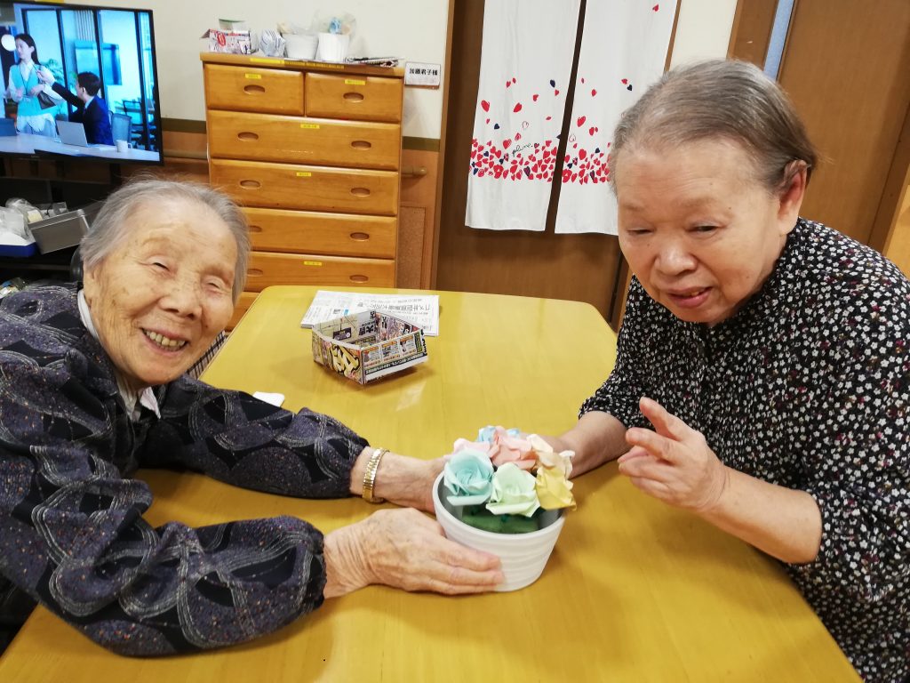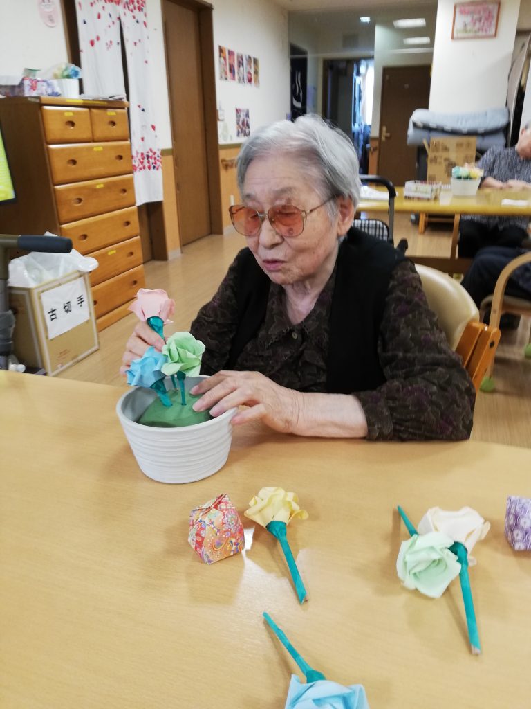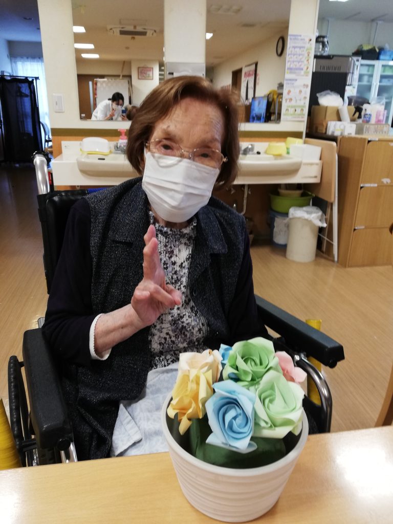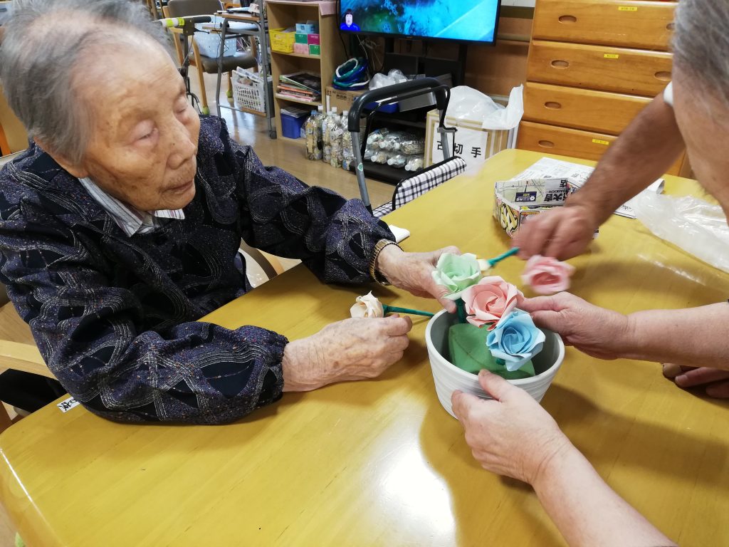 職員が1つ1つ丁寧に作った、色とりどりの紙の花🌹🌼🌸