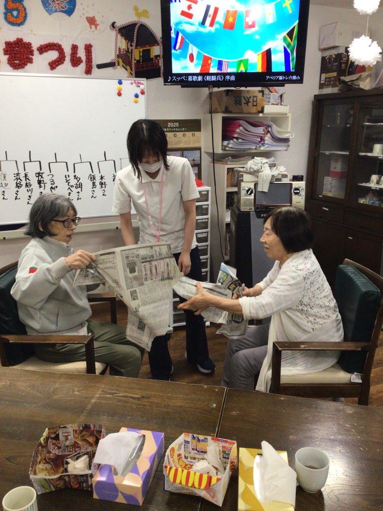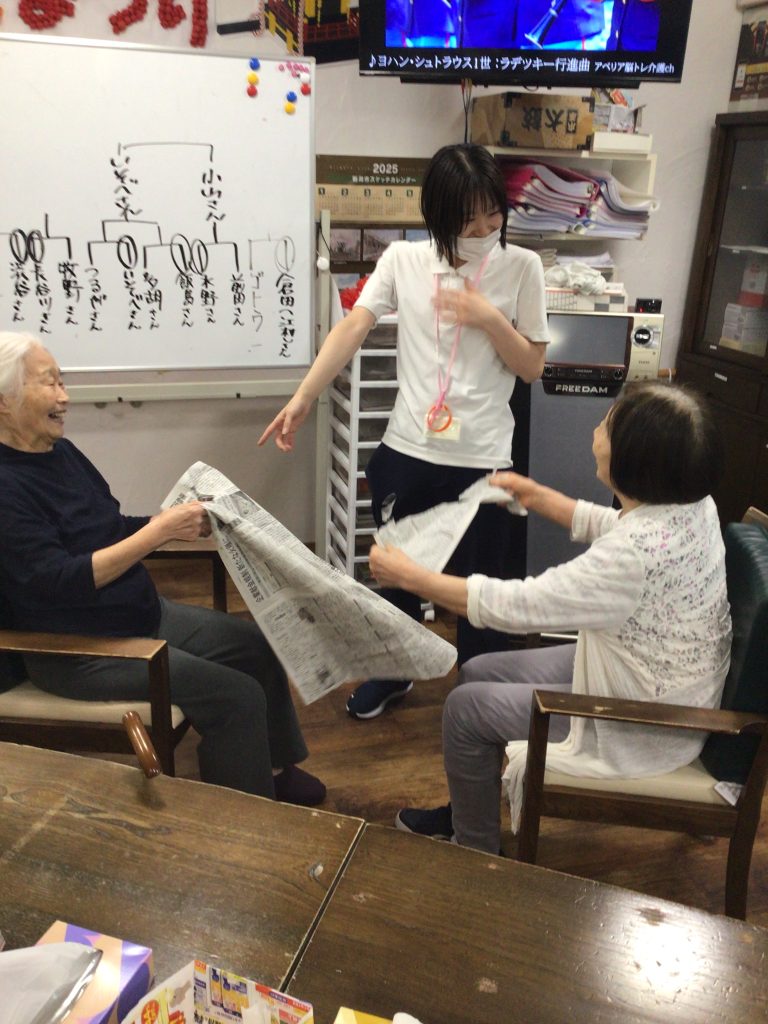 ルールはお互い新聞の好きなところを持ち、「せーの❗️」の合図で引っ張るだけ😆