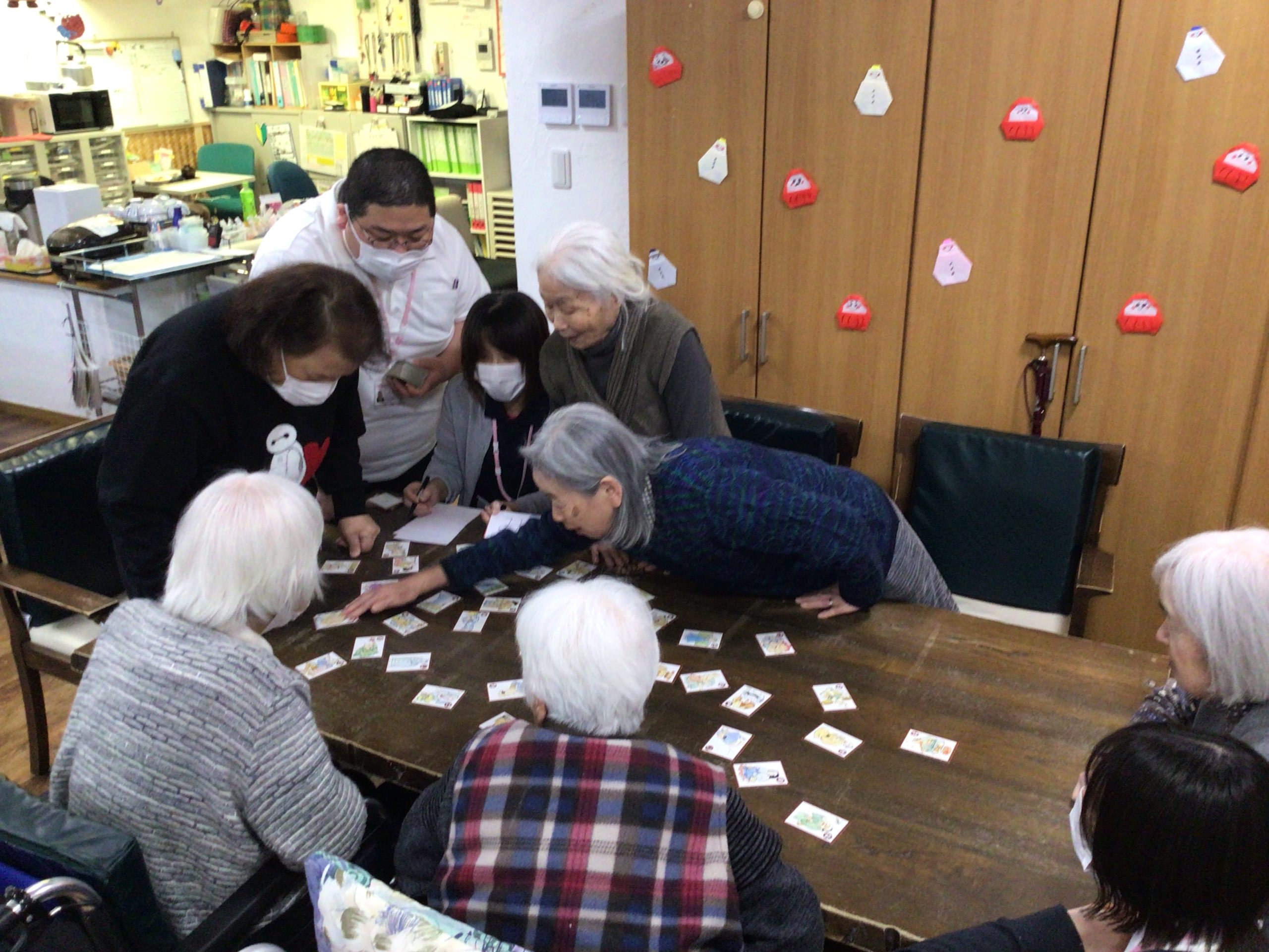 席からカルタが遠くても精一杯腕を伸ばしてゲット✨