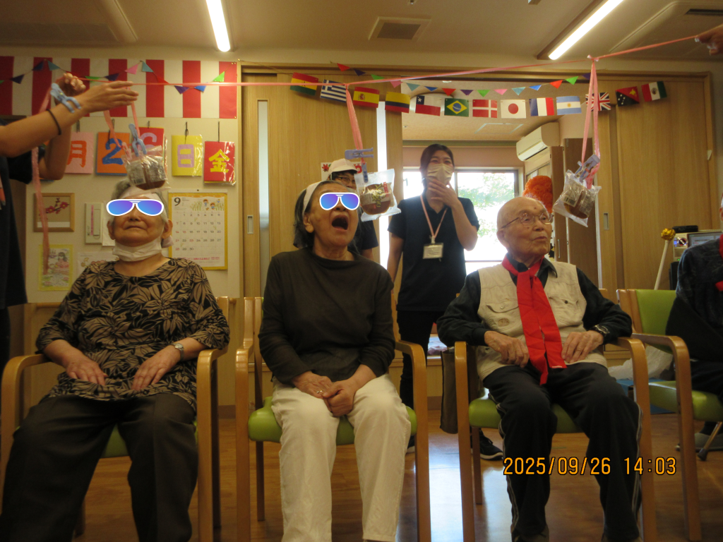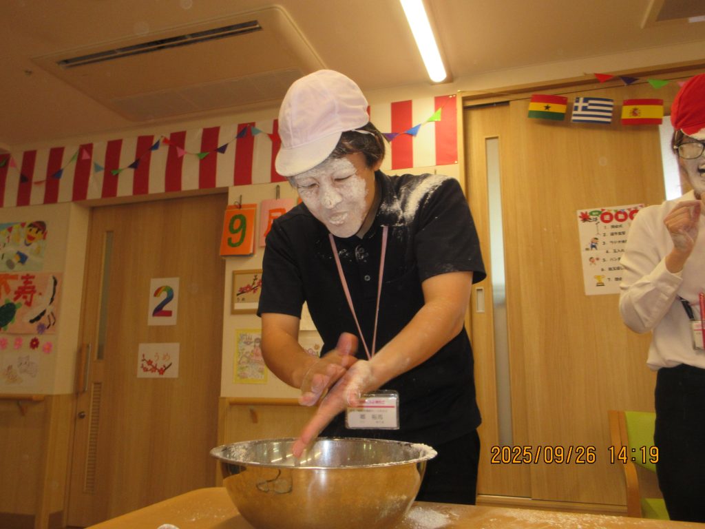 \爆笑続きのおやつを賭けたパン(?)食い競争/