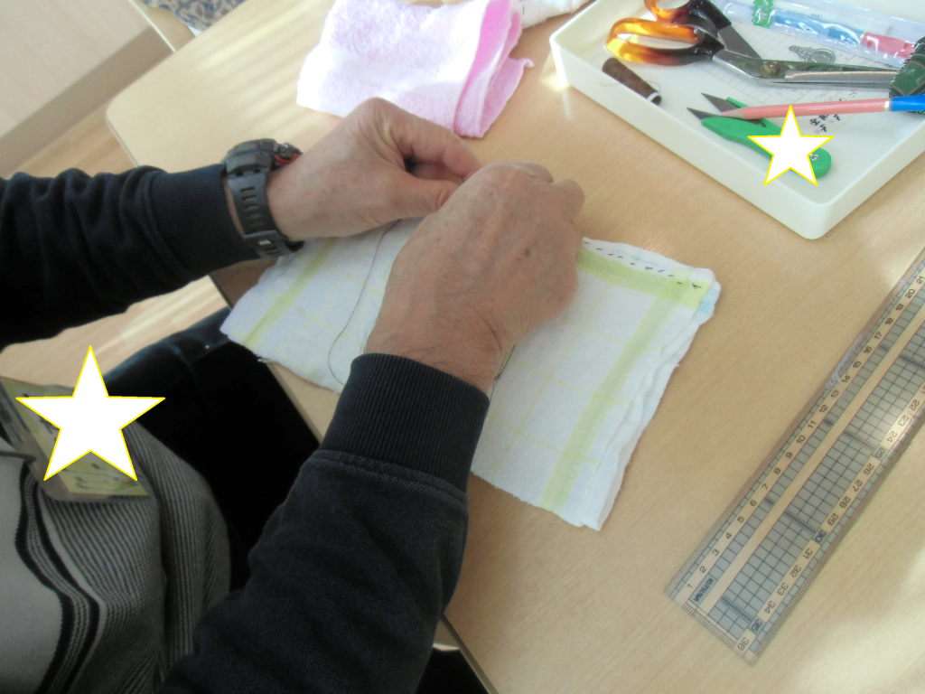 傾聴ボランティア様とお話ししながらの手作業は、とても楽しそう。