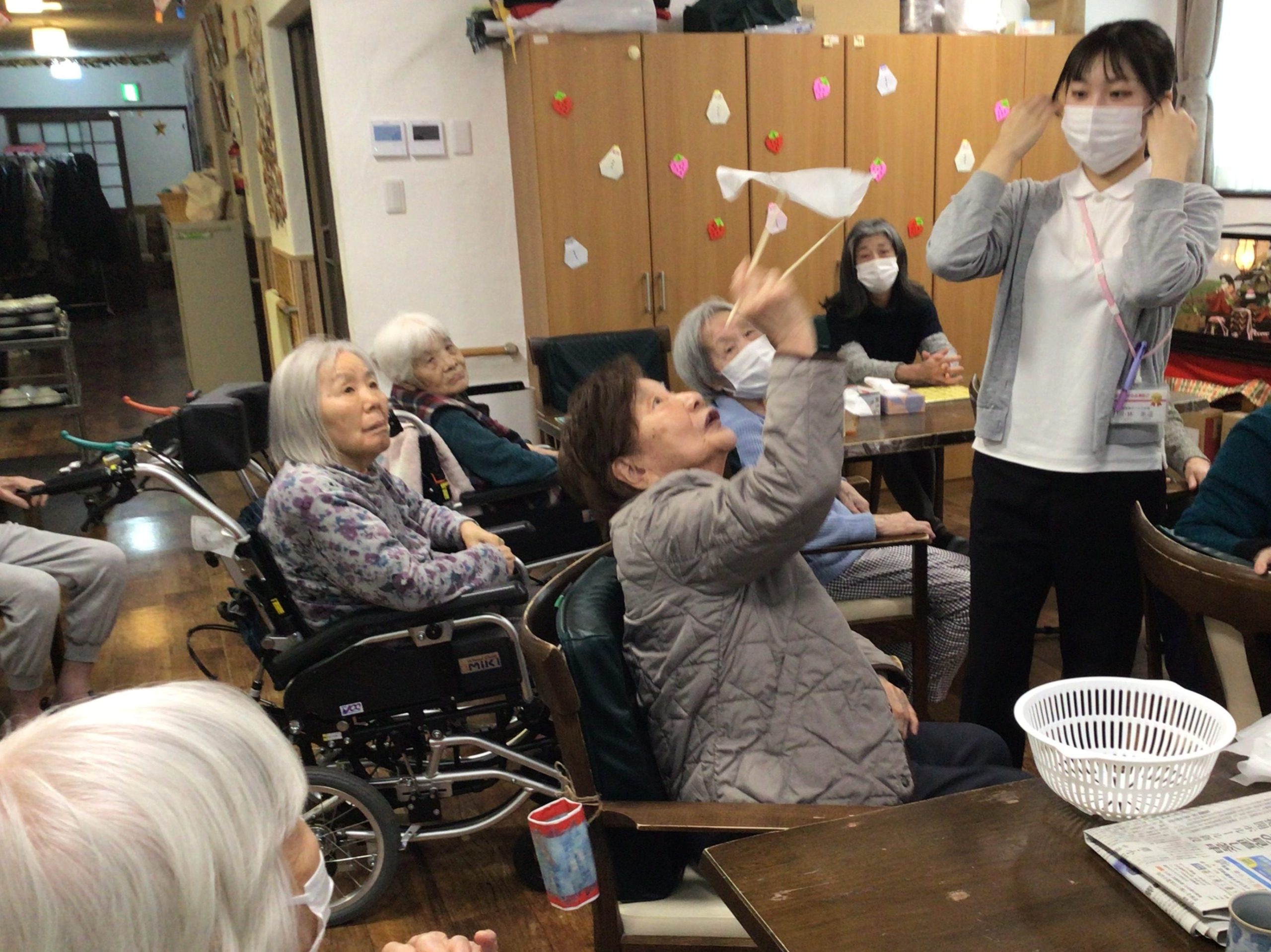 暖房の風もあり、どこへ落ちるかわからないのでとても難しいレクになりました💦