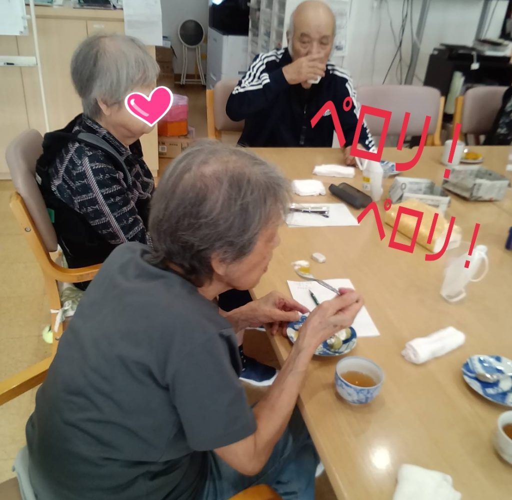 「おやつ」には☝️昨日、作ったオイモを添えました🙆🎵