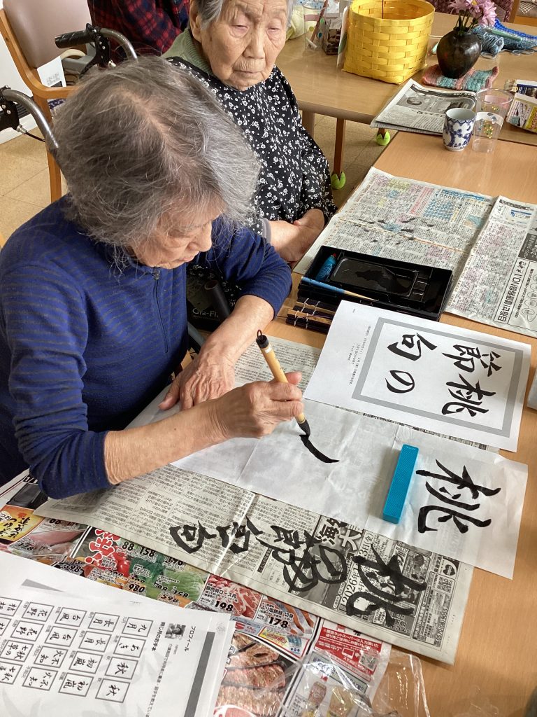 皆さん遠慮なさる中、「書道なんて久々だわ!」と集中の中にも楽しそうに書いて下さいました。
