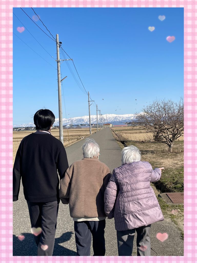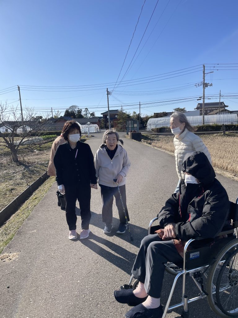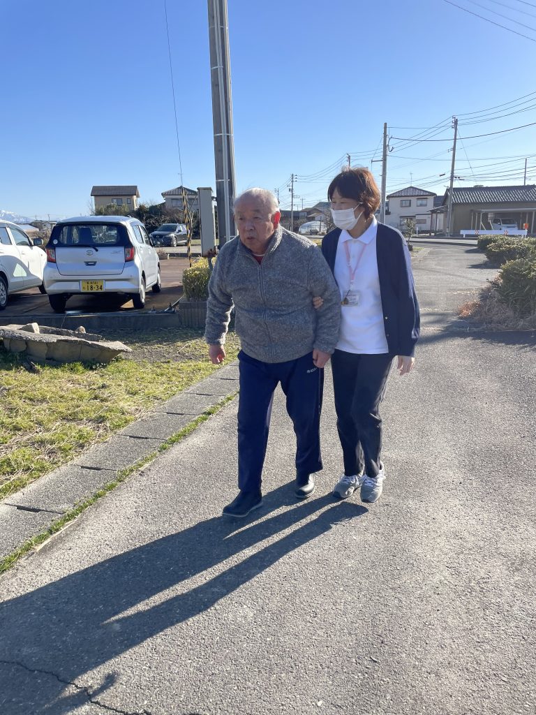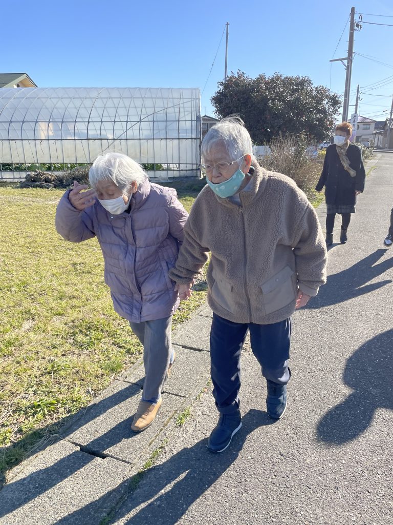 ちょっと歩くと、こっちも危ないから〜と手を伸ばすお客様。すかさず、職員がお隣へ。