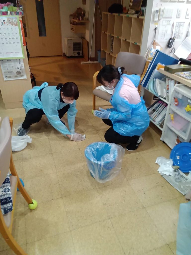 本日の事業所会議にて嘔吐物の処理方法を勉強しました!