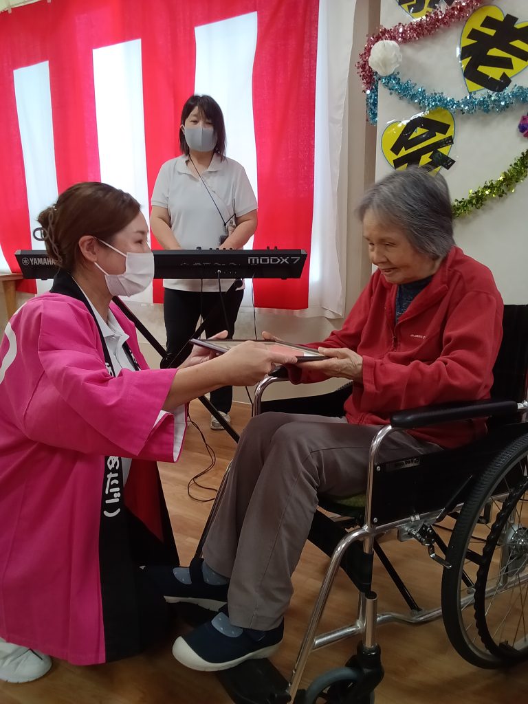ご長寿のお客様にはちゃんちゃんこを着ていただきました👚