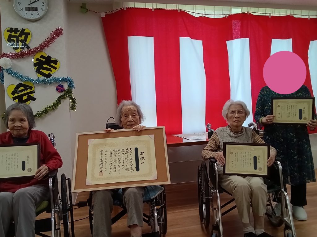 百寿の方が1名、百寿を超えられた方が2名いらっしゃいます。