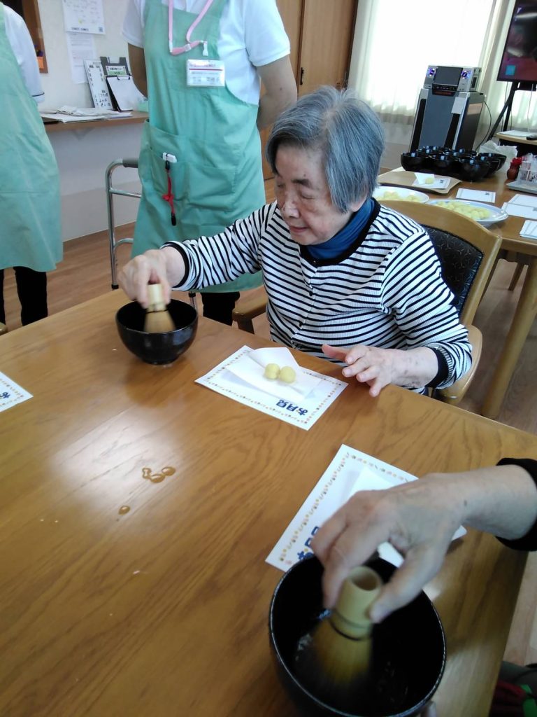 サツマイモ団子が完成したら、抹茶も点てていきましょう🍵