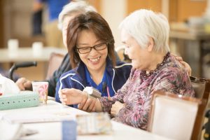 ●デイサービスセンターにおける介護業務 デイサービスセンターでは、地域にお住まいの方にサービスを提供します。お客様が在宅で生活が続けられるように自立支援を行います。 業務内容については、入浴、食事、排泄、着脱の介助・レクリエーション企画・実践・送迎時の同行・介助などを行います。 ●在宅で生活されている方々が対象ですので、元気な方が多いです。 ●介助量を減らし、機能訓練を積極的に行い、コミュニケーション等が多くとれるような環境を目指しています。 |