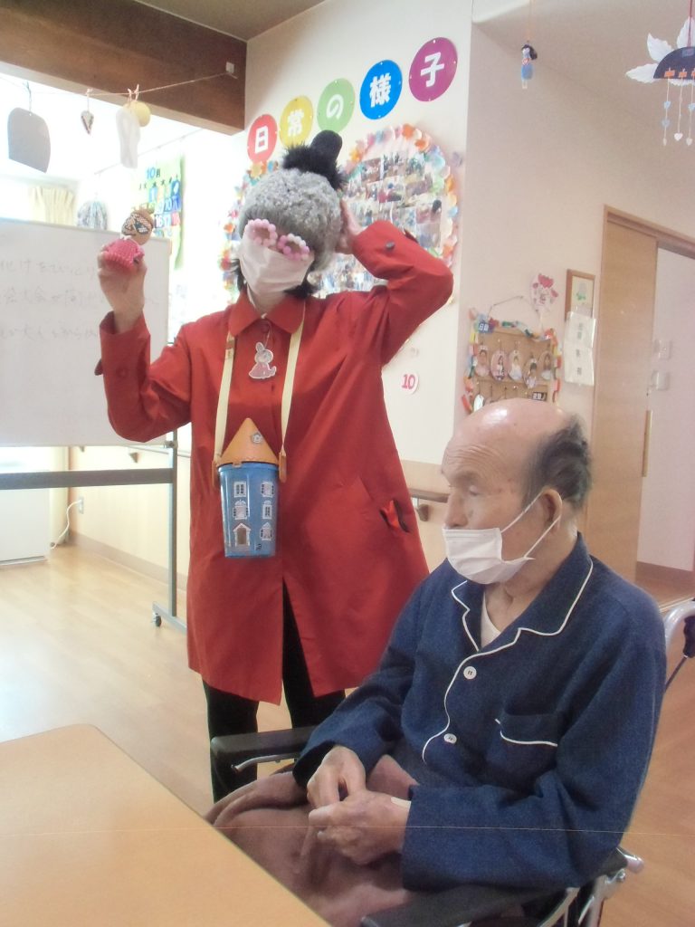 クイズあり、先週作成したカボチャも一緒におやつを食べて、お客様大変は