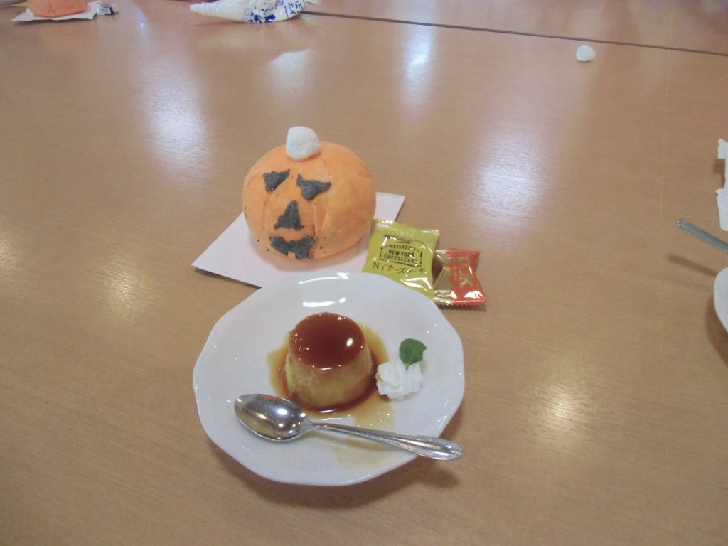 職員の手作りカボチャプリンがおやつでした。