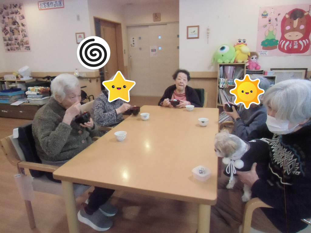 少し早いですが、縁起物、おぜんざいを皆でいただきました。
