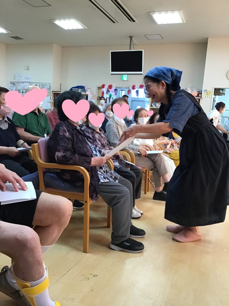 マジックショー! 新発田マジック倶楽部さんがやってきてくださいました。 皆さん、あちこちで「わー」と歓声があがっていました。☺ ちょうどお誕生日のお祝いをさせて頂く機会があり ボランティアさんにご協力頂きました!