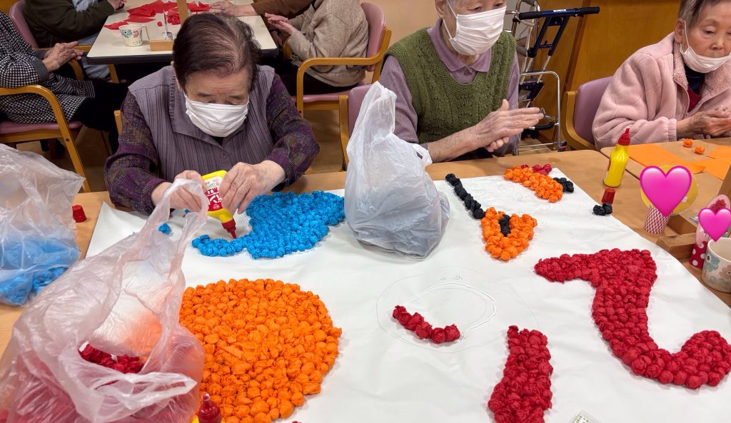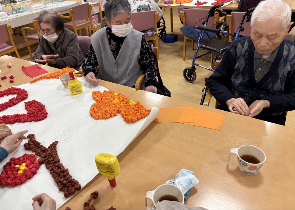 いよいよ丸めた紙を”貼る”作業に入りました!