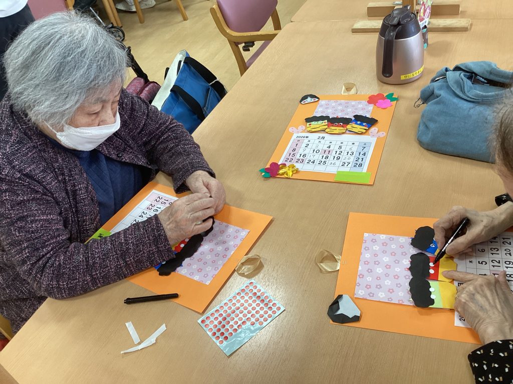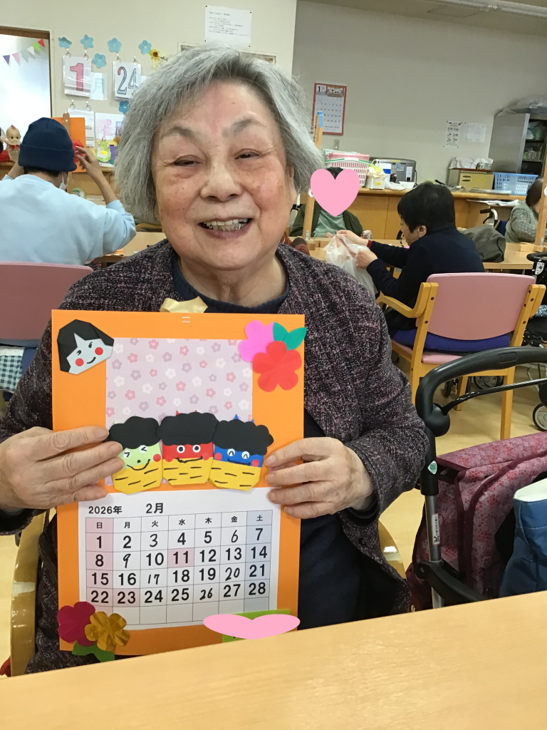 クラフト教室 今月も来月のカレンダー🗓️を作りました! 節分をイメージしたカレンダーとなってます! 鬼・おかめの顔は皆さんに描いてもらいます👹 一人ひとり違う表情で個性豊かで とても可愛く仕上がっています🥰