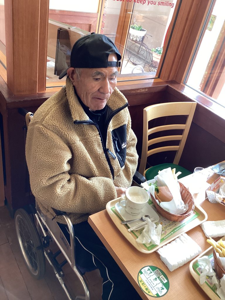 外食レク😋🍔 モスバーガーさんへ外食レクへ行ってきました☺️ とても美味しそうです🍔💕 付き添った職員も一緒にいただきます♪ ◯◯へ行きたい、◯◯が食べたい、など お客様の願いを叶えていきます✨ お気軽にお聞かせください‼️