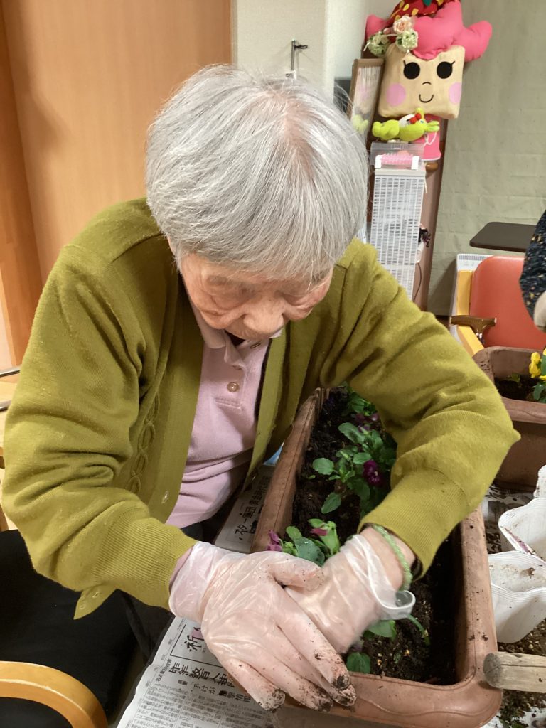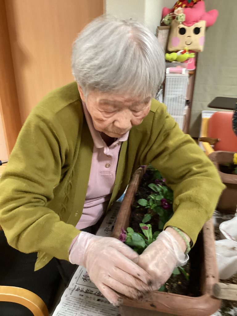 お好みの色のパンジーを植え💖