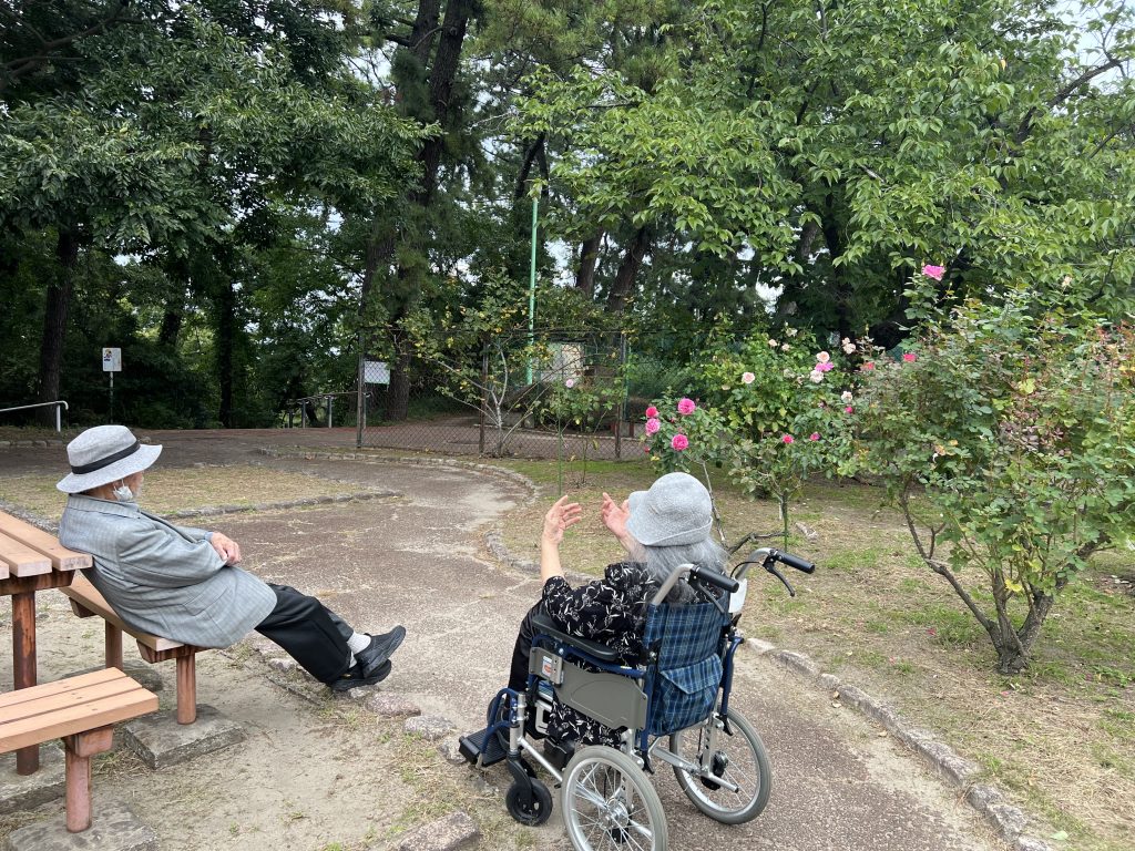外の空気を感じながら、お2人で談笑する姿が微笑ましかったです😊