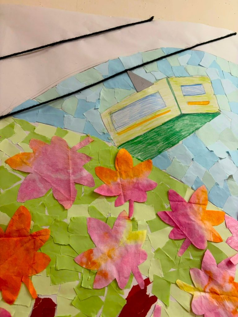 そんな今月壁面は紅葉の貼り絵を行いました!7