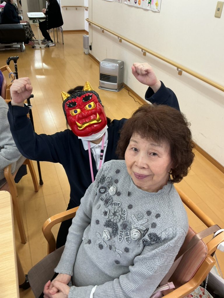 豆まき👹 こんにちは!デイサービスセンター浦山です。 2月3日は節分でしたね。浦山にも鬼が来ました👹 皆さん豆まきをして退治してくださいました。 おやつは鬼プリンをいただきました🍮 鬼と記念撮影も(笑)