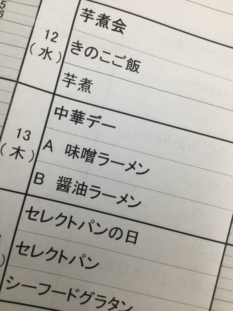 昼食も豪華で、12日(水)には芋煮が皆さんの目の前で盛り付けられたり13日(木)は中華デーでラーメンが選べたり14日(金)はセレクトパンの日でお好きなパンを選んで召し上がられたりと盛りだくさん!