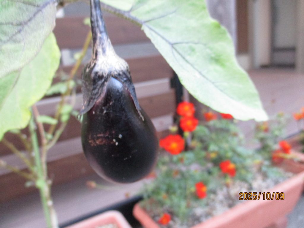 ナスも立派に何個か育っていました。可愛かったので撮りました☺