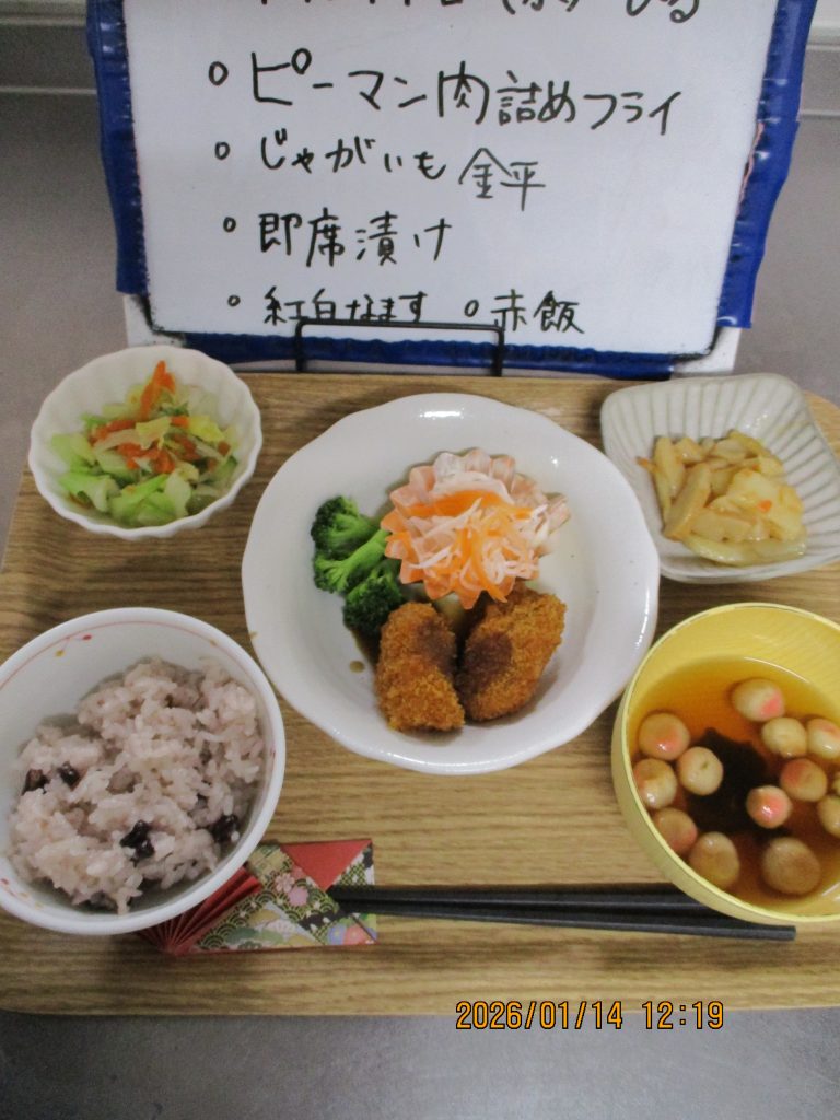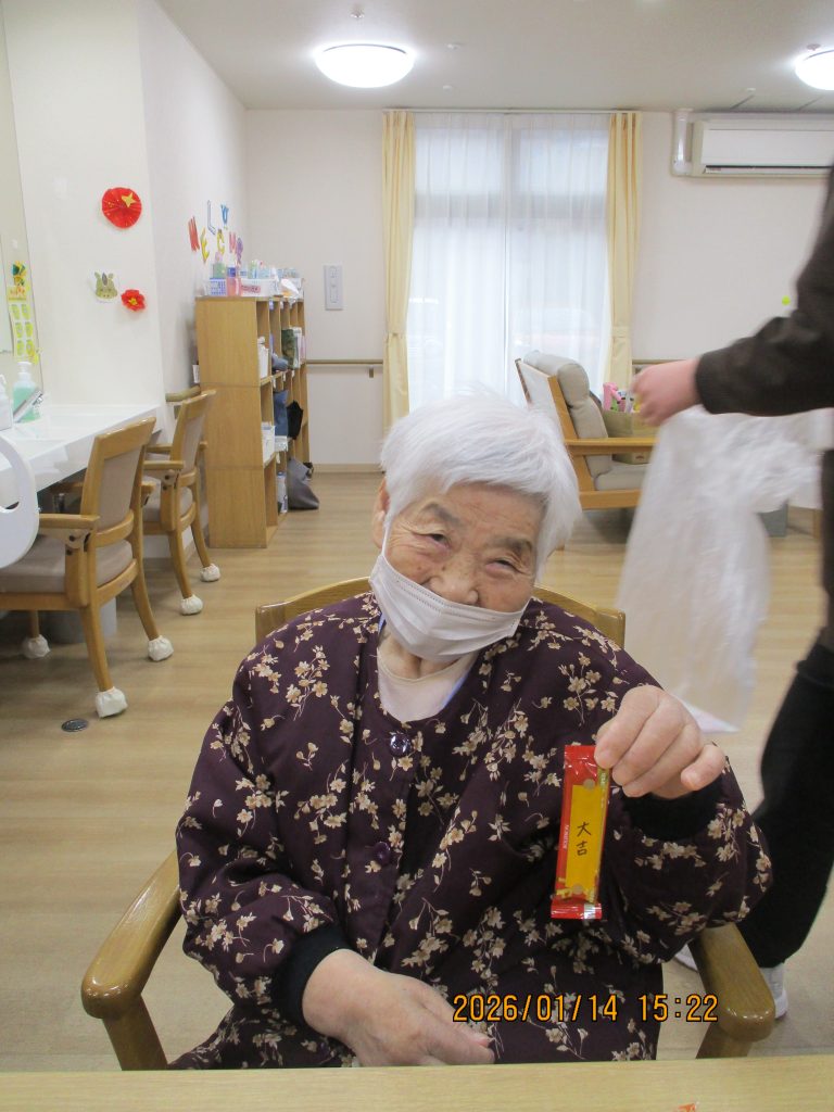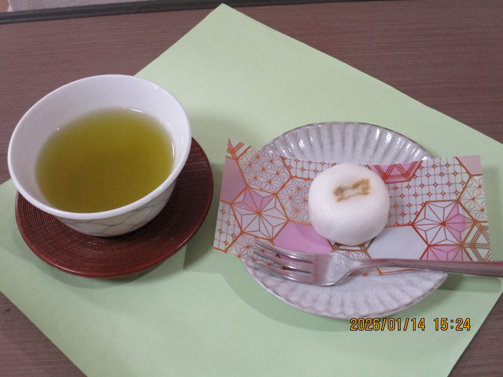 おやつには干支まんじゅうと緑茶でホッと一息。