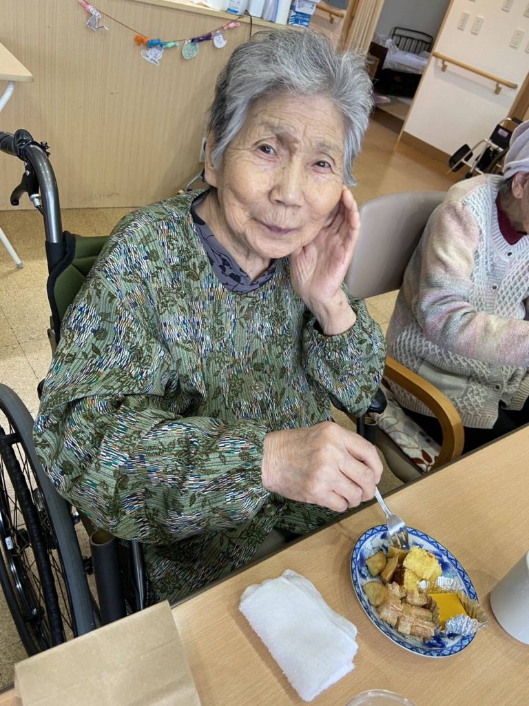 慶寿苑ハロウィン会② ハロウィンでのおやつはキッチンカーのチュロスとポテトをメインとしてカステラとかぼちゃのプリンを添えました🎃 同じ色ばかりでなにがなんだかわからないかなと思いましたが、皆様とても喜んでくださいました😊