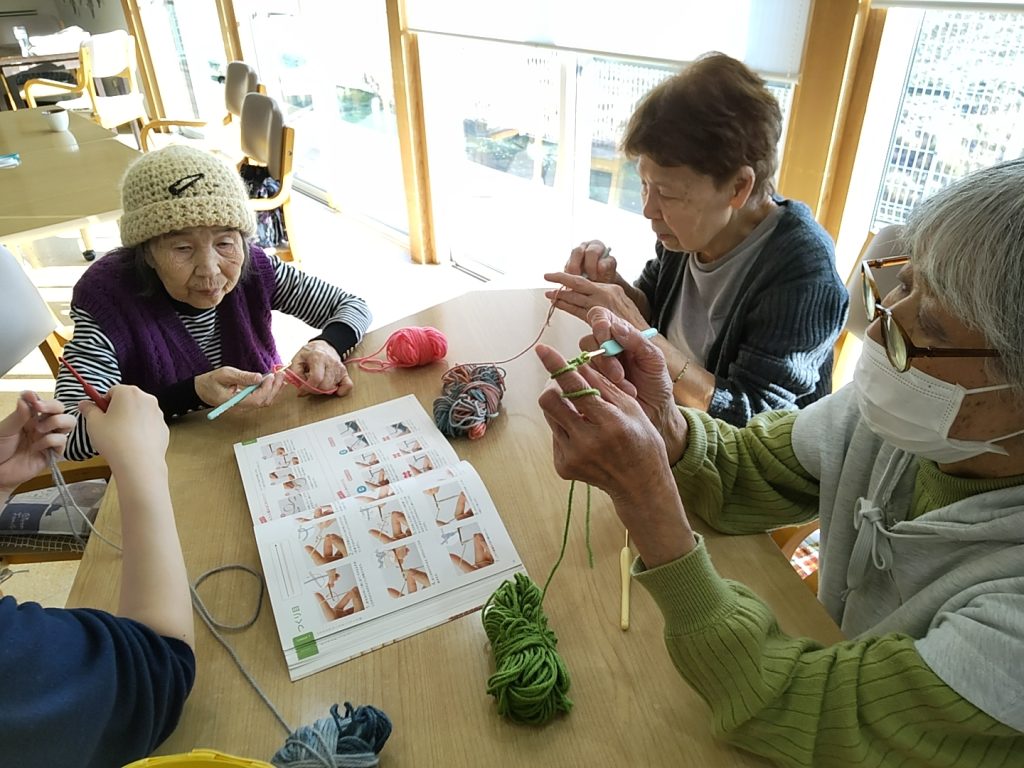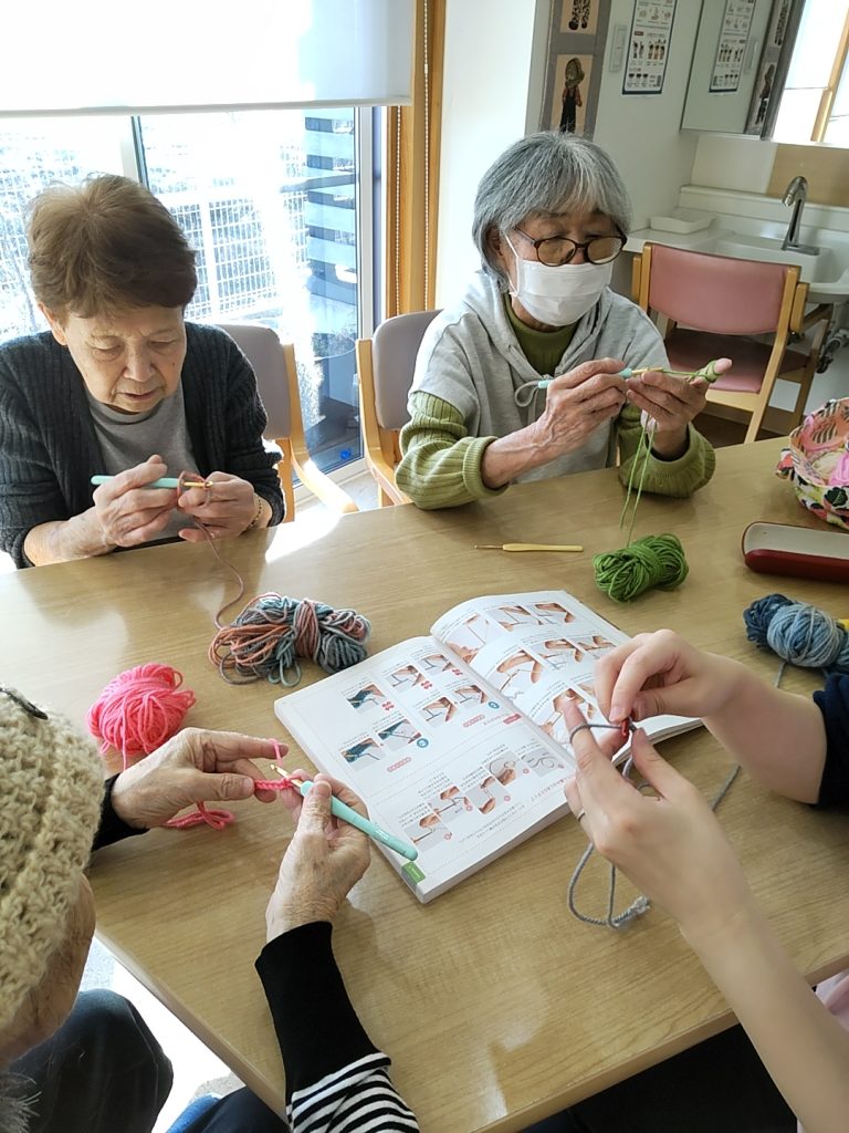 看護師さんによる⤴️編み物教室😄
