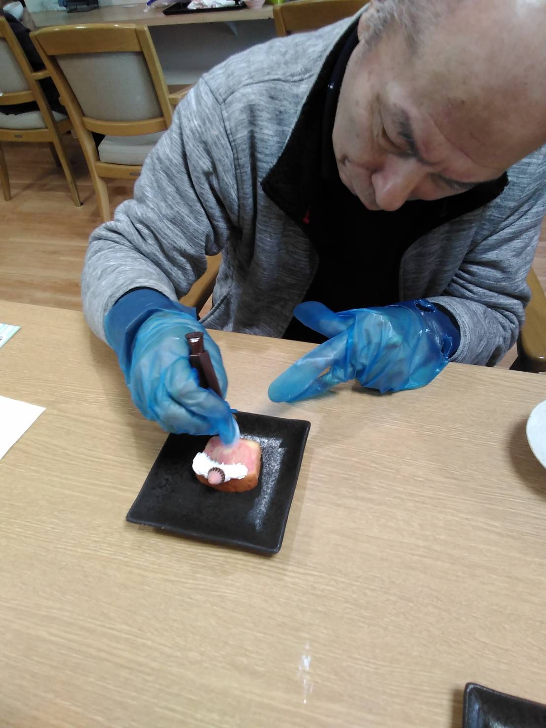 午前中は3時のおやつにお出しした鬼ケーキのデコレーションをしてくださいました♪