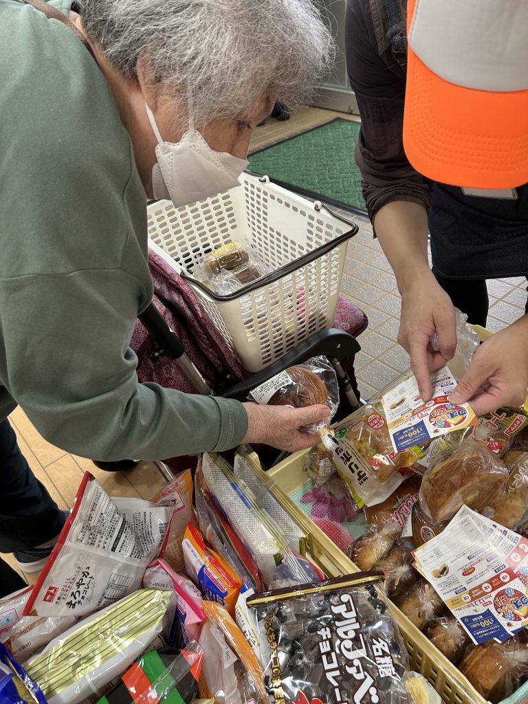 商品名がよく見えないと真剣にご覧になっています 職員が代わりに読み上げています