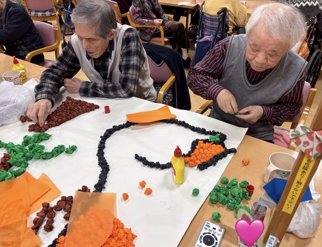 いよいよ丸めた紙を”貼る”作業に入りました!
