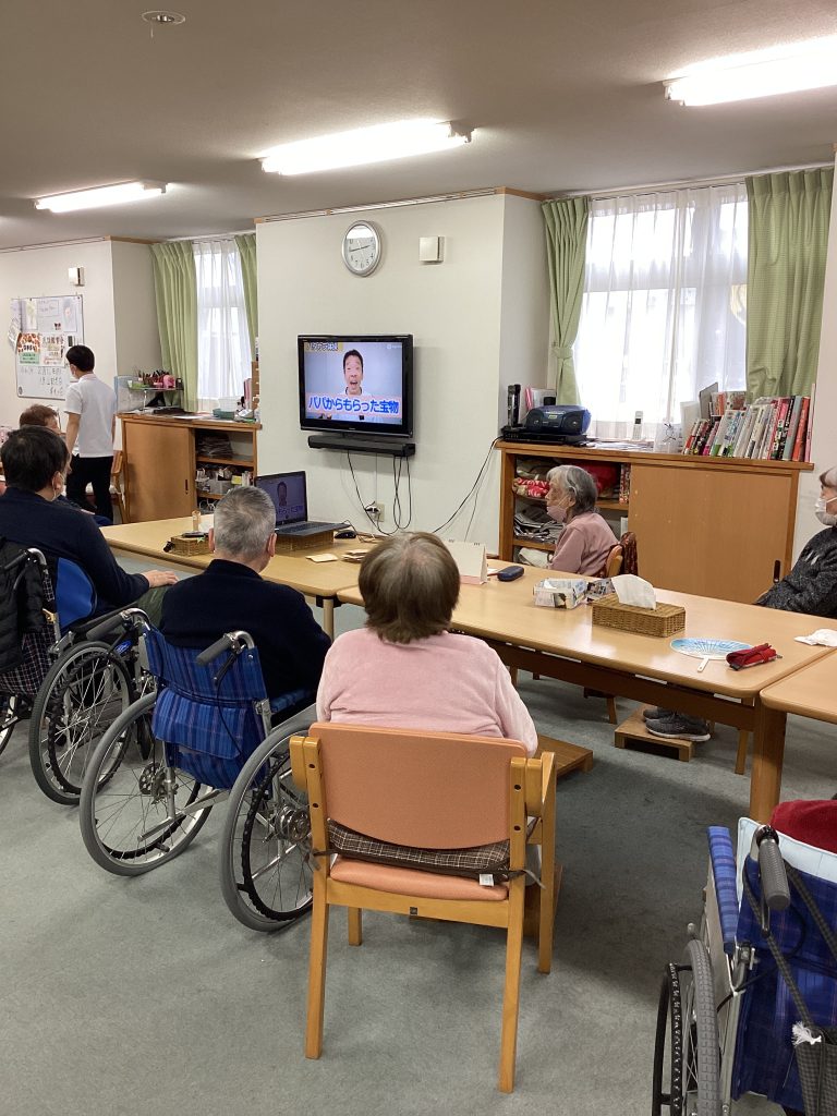 口腔体操👄 午後からは体の体操もしますが、合わせて口腔体操もおこなっています‼️ みなさんテレビの画面を見ながら真剣に取り組まれています⚡️ 口周りや舌を動かすのも筋肉ですので、 使わないと動きが悪くなり、 噛んだり飲み込んだりが大変になります💦 体操を続けてお口の機能も守っていきましょう🥰